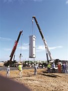 圖為吊裝現(xiàn)場(chǎng)。         11月2日,中國(guó)化學(xué)工程第六建設(shè)有限公司承建的海南華盛26萬(wàn)噸/年非光氣法聚碳酸酯(PC)項(xiàng)目...
