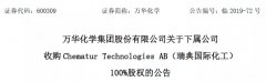 穩(wěn)坐全球MDI龍頭!萬華化學(xué)收購瑞典國(guó)際化工100%股權(quán)
