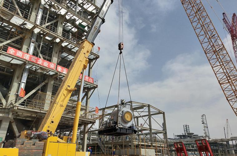 榆能化聚烯烴項目部相關(guān)負(fù)責(zé)人介紹,PP3裝置主反應(yīng)器循環(huán)氣壓縮機是該裝置大力推進復(fù)工復(fù)產(chǎn)、疫情防控以來進行的首臺大型設(shè)備吊裝。吊裝前,相關(guān)單位通力配合,精心謀劃,提前搭設(shè)腳手架作業(yè)平臺等,有效減少了高處作業(yè),大大降低了設(shè)備安裝風(fēng)險。