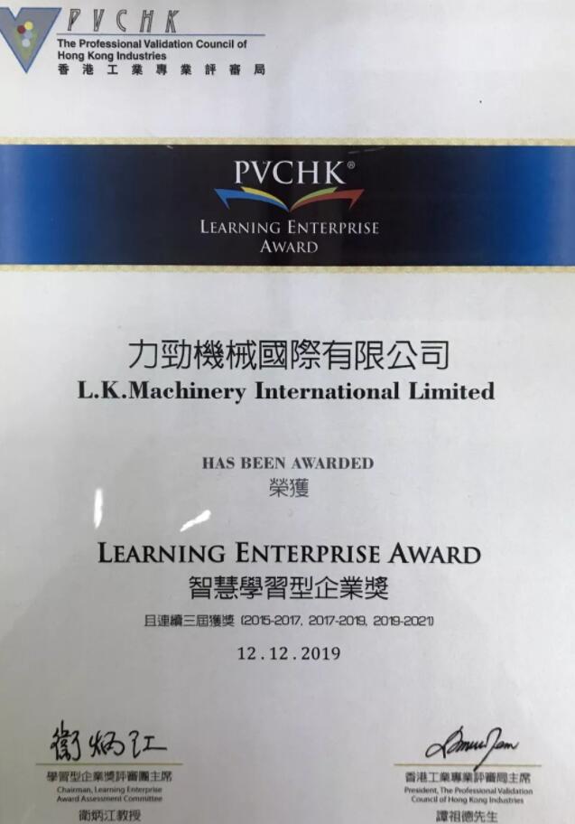 ????????經過自我評估、評審專員初評和獨立終審委員會專家的最終客觀審定,力勁集團在“資源投入推動人才培訓”、“系統(tǒng)化管理人才發(fā)展”、“資訊科技應用”、“策略運用”、“企業(yè)文化”五個標準、五十項細節(jié)方面達到評審標準,榮獲“2019智慧學習型企業(yè)獎”。力勁集團CEO劉卓銘先生、董事會主席張俏英女士出席頒獎典禮。