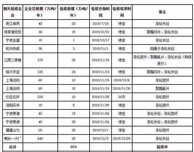 2019年底,聚酯裝置減產(chǎn)檢修or開(kāi)車投產(chǎn)?