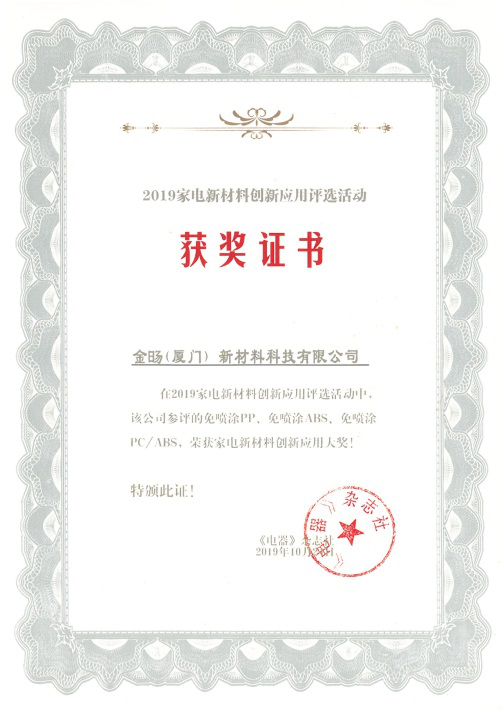 金旸新材料斬獲2019家電新材料創(chuàng)新應(yīng)用大獎(jiǎng)