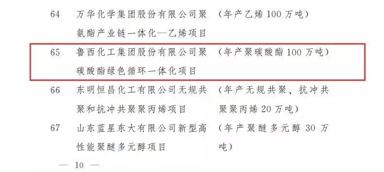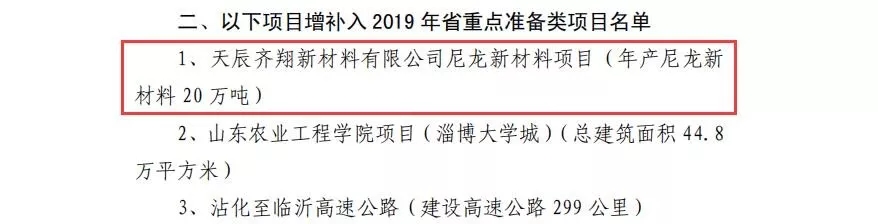 ????????近日,山東省發(fā)改委公布了關(guān)于調(diào)整2019年省重點(diǎn)項(xiàng)目調(diào)整的通知,主要涉及項(xiàng)目進(jìn)出的調(diào)整,其中增補(bǔ)了7月25日公布的天辰齊翔100萬噸尼龍66新材料項(xiàng)目入選,而魯西化工100萬噸聚碳酸酯PC項(xiàng)目退出。早在7月23日,山東省發(fā)改委發(fā)布通知:關(guān)于2019年省重點(diǎn)項(xiàng)目中期調(diào)整的通知。