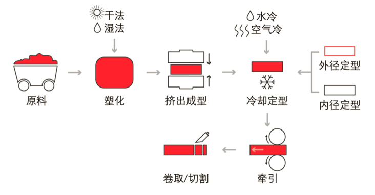 借助螺桿或柱塞的擠壓作用,使受熱熔融的高分子材料在壓力的推動下,強行通過機頭模具而成型為具有恒定截面連續(xù)型材。目前我國擠出成型制品占塑料制品總量的1/3以上。