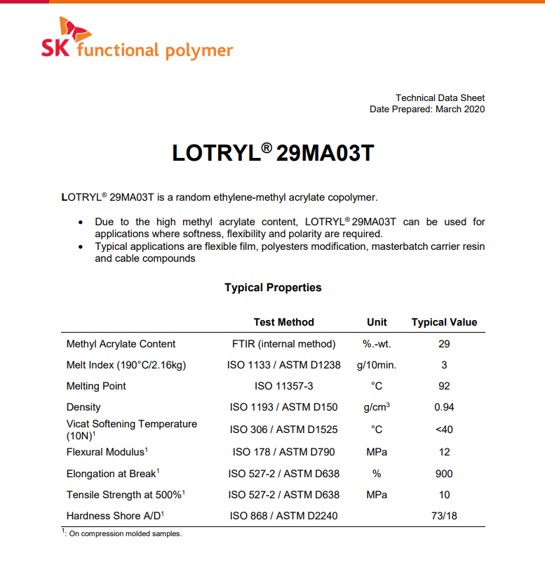 - 法國 Ema阿科瑪 Lotryl 29MA03T 電線電纜 乙烯-丙烯酸酯共聚物 物性表, 法國 Ema阿科瑪 Lotryl 29MA03T 電線電纜 乙烯-丙烯酸酯共聚物 產品參數(shù),法國 Ema阿科瑪 Lotryl 29MA03T 電線電纜 乙烯-丙烯酸酯共聚物 性能表,法國 Ema阿科瑪 Lotryl 29MA03T 電線電纜 乙烯-丙烯酸酯共聚物 出廠報告, MSDS,, 物質安全資料表, UL黃卡,{ SGS報告, RoHS, 食品級認證, NSF飲用水標準, 產品資料, 產品性能, 出廠報告, 原廠原包, 代理商, 熱變形溫度, 熔指數(shù), 流動系數(shù), 抗沖擊性能、沖擊強度, 低溫韌性、低溫抗沖擊性能, 熔體流動系數(shù)、熔體流動速率, 加工工藝、加工參數(shù)、加工溫度, 歐盟RoHS 德國FDA 美國FDA 日本FDA