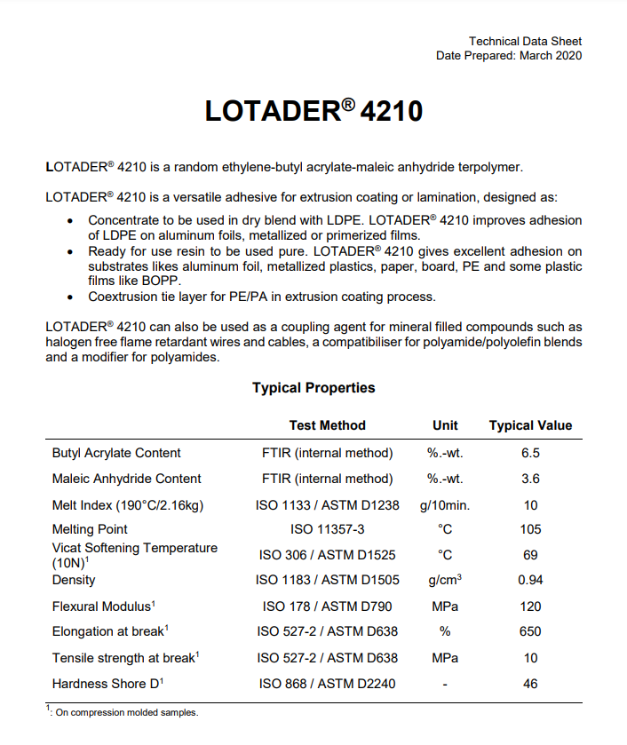 - 阿科瑪 EBA 4210 良好的附著力 層壓板 增粘劑 良好的粘合性 物性表, 阿科瑪 EBA 4210 良好的附著力 層壓板 增粘劑 良好的粘合性 產(chǎn)品參數(shù),阿科瑪 EBA 4210 良好的附著力 層壓板 增粘劑 良好的粘合性 性能表,阿科瑪 EBA 4210 良好的附著力 層壓板 增粘劑 良好的粘合性 出廠報告, MSDS,, 物質(zhì)安全資料表, UL黃卡,{ SGS報告, RoHS, 食品級認證, NSF飲用水標準, 產(chǎn)品資料, 產(chǎn)品性能, 出廠報告, 原廠原包, 代理商, 熱變形溫度, 熔指數(shù), 流動系數(shù), 抗沖擊性能、沖擊強度, 低溫韌性、低溫抗沖擊性能, 熔體流動系數(shù)、熔體流動速率, 加工工藝、加工參數(shù)、加工溫度, 歐盟RoHS 德國FDA 美國FDA 日本FDA
