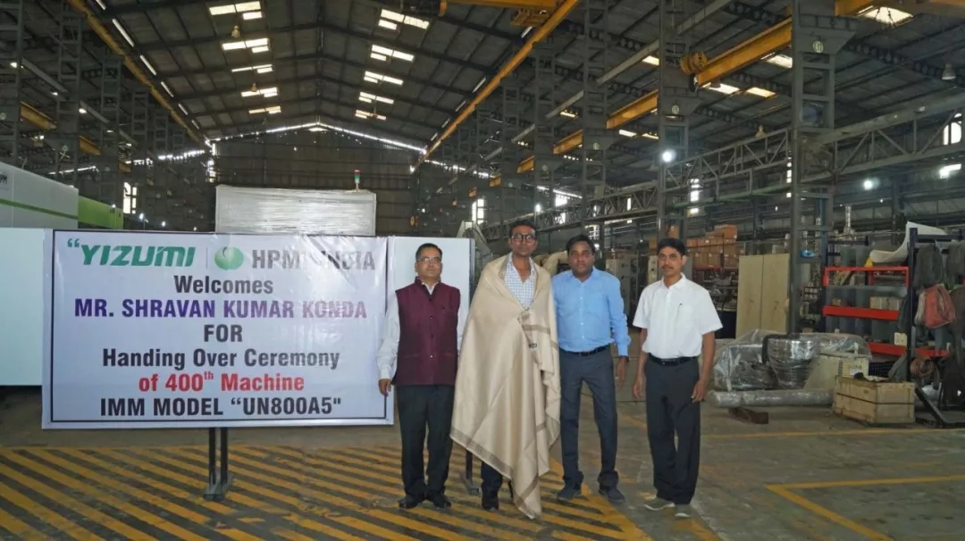 ????????2019年12月25日,伊之密印度工廠生產(chǎn)的 UN800A5 注塑機成功交付給當?shù)乜蛻鬝hriyan Polymers公司。這是印度子公司銷售的第400臺注塑機。伊之密在工廠內(nèi)舉行了一個簡單而隆重的儀式,紀念這一里程碑。