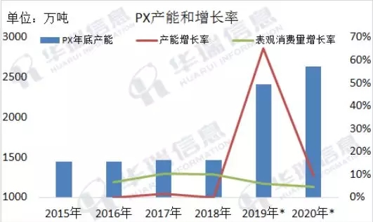 ????????PET,有一個很長的學名,聚對苯二甲酸乙二醇酯,是由PTA(精對苯二甲酸)和MEG(乙二醇)合成的聚酯切片。PTA來源于石油產品PX(對二甲苯),PX之前產能一直處于不足狀態(tài),但2019年PX的產能迅猛增長,從產能不足到最近甚至未來幾年的產能過剩。這預示著今后將會有更多的PET新料進入市場,化工產能將成為PET的重要影響因素。