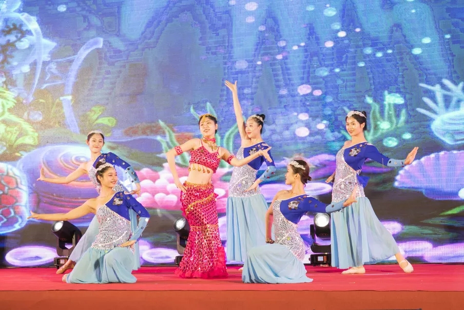 舞者歡快輕盈地舞動(dòng)著,宛若一群活潑跳躍的魚(yú)兒,