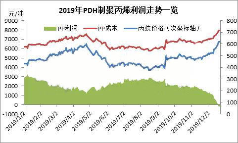 ????????2019年12月份,對于聚丙烯這個(gè)產(chǎn)品來說,注定是不平凡的一個(gè)月份。聚丙烯價(jià)格跌破8000元/噸大關(guān)并一路下行、丙烷脫氫制聚丙烯利潤幾乎為負(fù)。