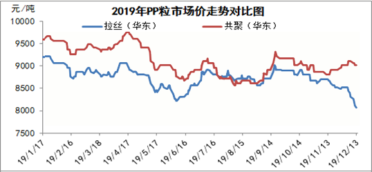 ????????目前國內(nèi)石化庫存一直在降庫為主,多連續(xù)下調(diào)出廠降價銷售。而下游工廠采購多維持剛需,市場供需矛盾的突出,使得不少貿(mào)易商轉(zhuǎn)向觀望。2019年逐漸步入尾聲,又有兩家廠家近期不斷傳出試車的好消息:浙江石化PP裝置12月8日造粒裝置試車成功,原料為外采丙烯,該PP裝置產(chǎn)能90萬噸/年(兩條線各45萬噸/年);其次是大連恒力二期試運行計劃推遲在12月底試車STPP裝置,春節(jié)前后試運行JPP裝置和乙烯裂解裝置。二期40萬噸/年(STPP和JPP線各20萬噸)。終端剛性需求縮水,高端貨源跟進謹慎,行情下行明顯。