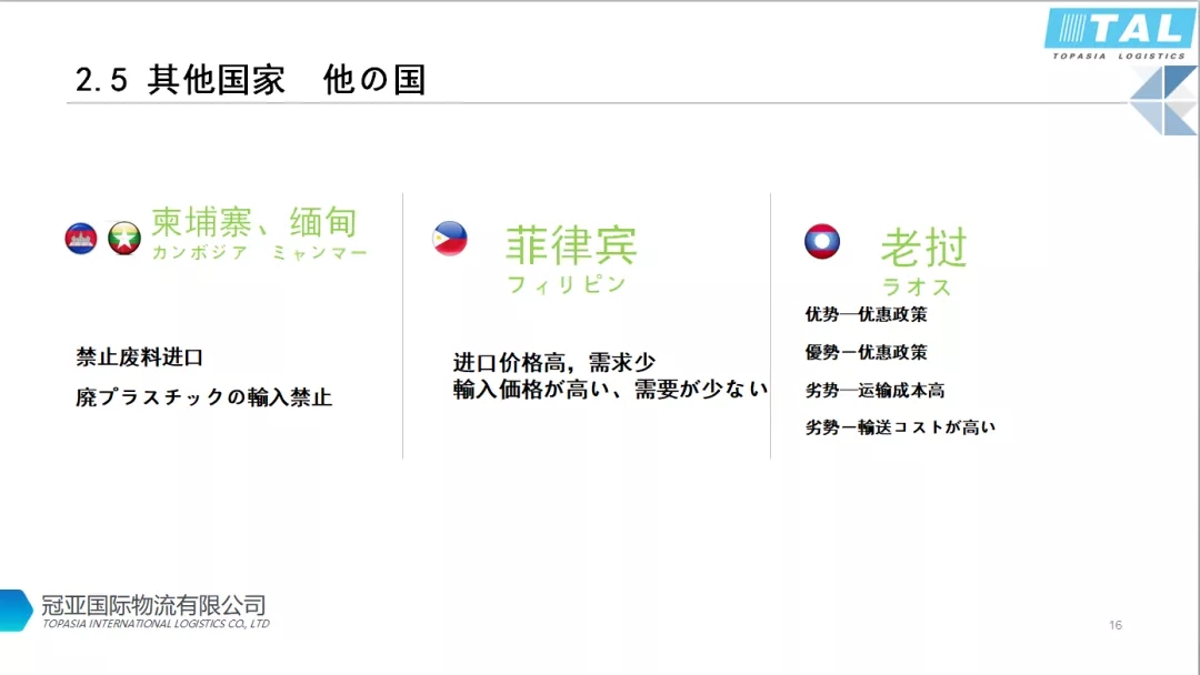 ????????菲律賓碼頭擁擠,國(guó)內(nèi)安全環(huán)境堪憂,再生資源的利用規(guī)模非常小。進(jìn)口成本比泰國(guó)還高約3500美金/柜,廢塑料企業(yè)很難生存。
