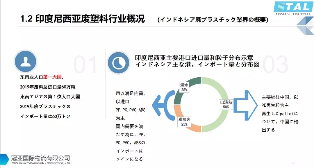 ????????印尼人口超過(guò)2億,是東南亞第一大人口國(guó)。進(jìn)口廢塑料主要港口是雅加達(dá),泗水,巴淡島;2019年廢料總進(jìn)口量約60萬(wàn)噸。