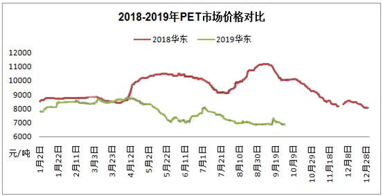 ????????PET: 本月,國內(nèi)瓶級PET市場整體呈先揚后抑走勢。上半月,瓶級PET市場持續(xù)處于低位震蕩格局,華東市場價格圍繞在6700-6950元/噸的區(qū)間徘徊。原料PTA市場窄幅波動,成本支撐穩(wěn)固,瓶片廠家多維持前期訂單發(fā)貨,現(xiàn)貨資源有限,廠家挺價出貨為主。下游前期備貨充足,需求持續(xù)較淡,買盤謹(jǐn)慎觀望為主,市場成交量有限。16-17日,國際原油高漲刺激下,聚酯原料PTA和乙二醇市場沖高,成本面利好推動,瓶片廠家報盤紛紛積極跟漲,華東市場價格漲至7150-7400元/噸。18日開始,隨著國際原油價格回落,原料PTA和乙二醇市場開始走低,成本面利空打壓下,瓶片廠家報盤紛紛下調(diào),中間經(jīng)銷商積極降價促銷,市場價格加速回落。至月底,華東市場重心跌至6750-6900元/噸。因?qū)笫行判牟蛔?,下游買盤積極性較低,僅維持剛需備貨為主,疲弱需求持續(xù)拖累市場。截止29日,9月華東地區(qū)瓶級PET市場均價在6911元/噸,環(huán)比漲0.01%,同比跌34.89%,最高價出現(xiàn)在9月17日的7400元/噸,最低價出現(xiàn)在4日的6700元/噸。