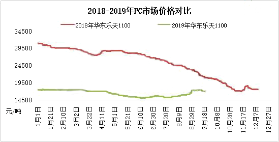 ????????月初,國內(nèi)生產(chǎn)企業(yè)出廠報盤調(diào)漲,以及部分進(jìn)口料到港補倉,人民幣匯率影響,貿(mào)易商現(xiàn)貨成本面均有走高,場內(nèi)看漲情緒漸起,報盤均呈上漲趨勢。伴隨上游苯酚反傾銷政策公布,市場看漲情緒進(jìn)一步加重,貿(mào)易商操盤積極性明顯走高,部分貨緊牌號更是日漲幅高達(dá)1200元/噸。下游對市場大幅上漲跟進(jìn)情況欠佳,市場整體貨源消耗顯疲弱。中旬,伴隨中秋小長假來臨,下游接盤多剛需為主,觀望為主。后期受沙特原油事件影響,國內(nèi)生產(chǎn)企業(yè)出廠報盤均大幅走高,伴隨原料雙酚A及上游化工整體大幅上漲的走勢,場內(nèi)炒漲情緒濃厚。下游詢盤意向走高,接盤備貨意向明顯,市場交投明顯提升。場內(nèi)利好支撐強勁,商家多有封盤暫不報價的操作,實盤以商談為主。隨著原油影響面的走弱,成本及貨緊雖支撐市場,但貿(mào)易商看漲心態(tài)回歸理性,觀望為主。下旬,臨近國慶長假,然下游終端工廠前期受市場報盤大幅走高的影響,多已提前備貨,接盤意向走弱,市場交投面回歸偏弱狀態(tài)。國內(nèi)PC生產(chǎn)企業(yè)出廠報盤延續(xù)走高,加之10月美金報盤明朗,后市成本面多存上漲預(yù)期。國內(nèi)裝置維持低負(fù)荷運行,進(jìn)口料多待國慶假期后才能到港補倉。成本及貨緊支撐報盤,然需求明顯走弱制約市場走高,貿(mào)易商操盤多顯謹(jǐn)慎,多依據(jù)各牌號走貨情況調(diào)整報盤。
