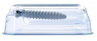 ????????Placon公司生產(chǎn)的 Orthofix醫(yī)療托盤是一款定制設(shè)計(jì)的包裝,用于固定外科植入手術(shù)用的醫(yī)療螺釘。這款包裝包括固定托盤和托盤蓋;兩個(gè)醫(yī)用螺釘固定在托盤內(nèi),其中每個(gè)螺釘頭鎖定在托盤中,每個(gè)螺釘?shù)闹黧w懸掛在托盤內(nèi)。這種配置可防止螺釘上的羥基磷灰石涂層在運(yùn)輸和搬運(yùn)過程中磨損。